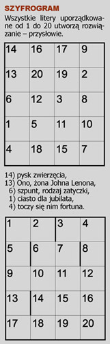 Zadanie polegające na odgadnięciu wyrazów klucz pomocniczego (na podstawie podanych definicji), wstawieniu ich w miejsca lub pola zaszyfrowane liczbami, a następnie, po ułożeniu liter zgodnie z numeracją, odczytaniu szyfru - rozwiązania zasadniczego. Liczby w tekście rozwiązania nie mogą się powtarzać, a więc każdej literze odpowiada jedna liczba. W szyfrogramie występuje zatem tyle liczb, ile liter składa się na rozwiązanie.